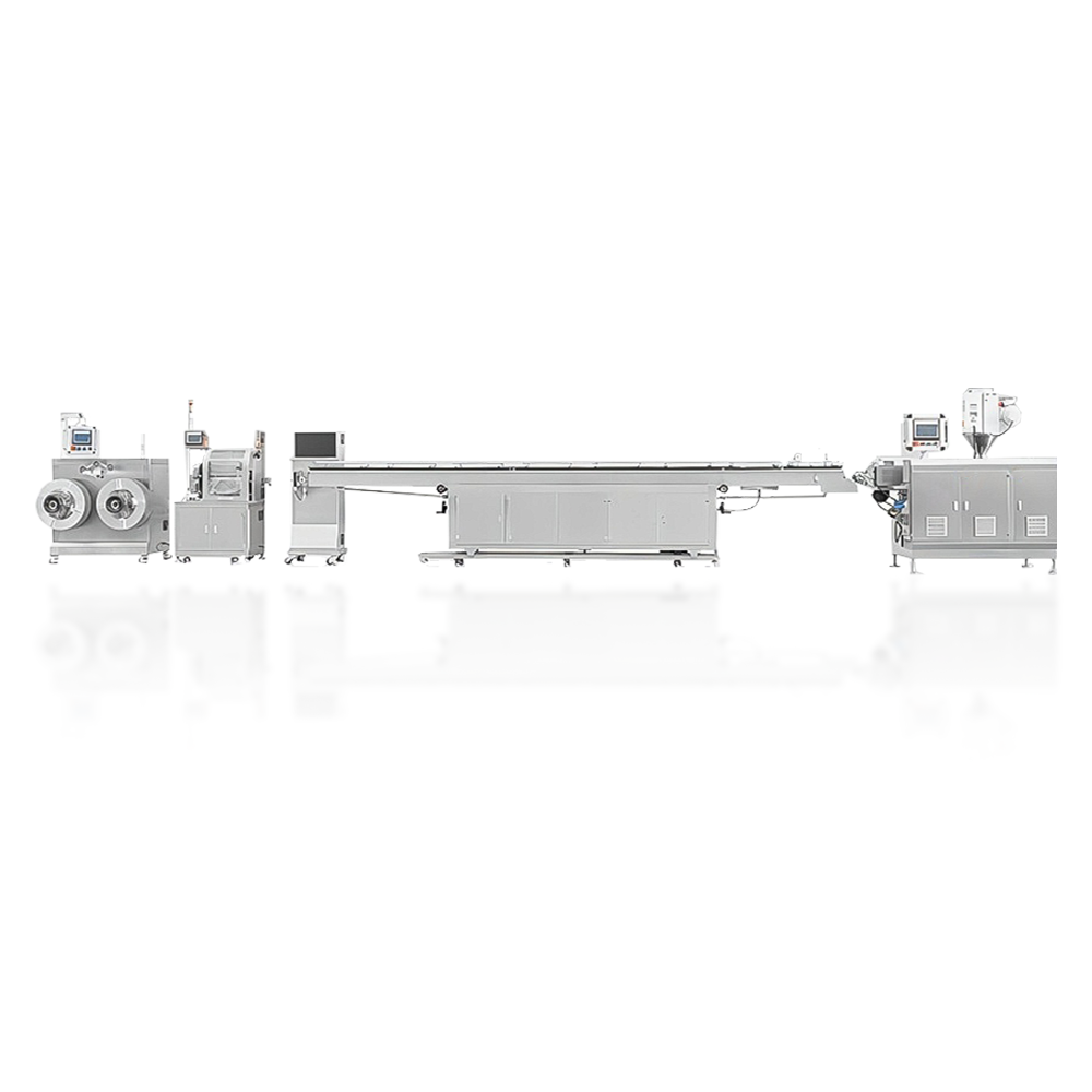 This production line includes all the configurations of a High-Speed Precision IV Infusion Tube Extrusion Line, including the main extruder, cooling system, traction system, storage system, and various additional auxiliary machines.