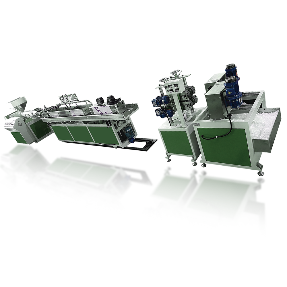 This production line includes all the configurations of a Strapping Band Extrusion line, such as the main extruder, cooling system, traction system, storage system, and various additional auxiliary machines.